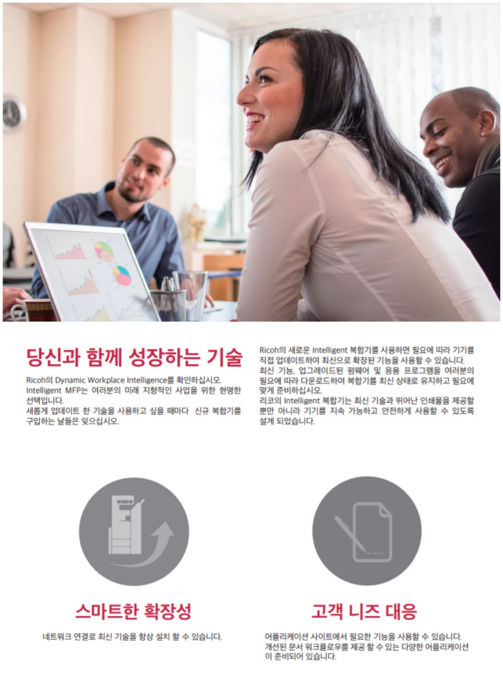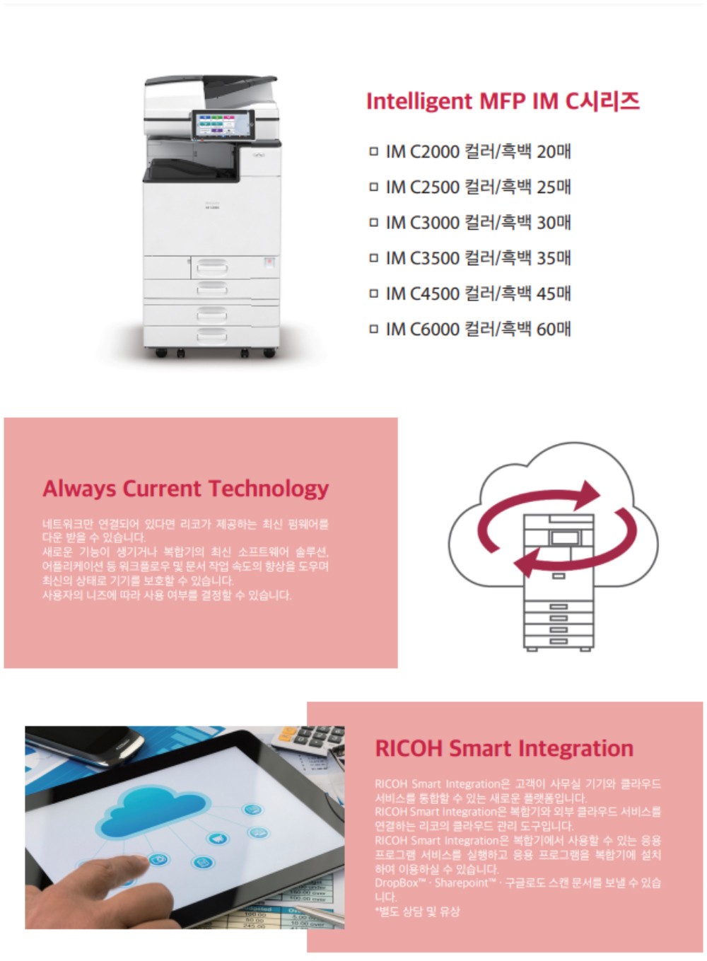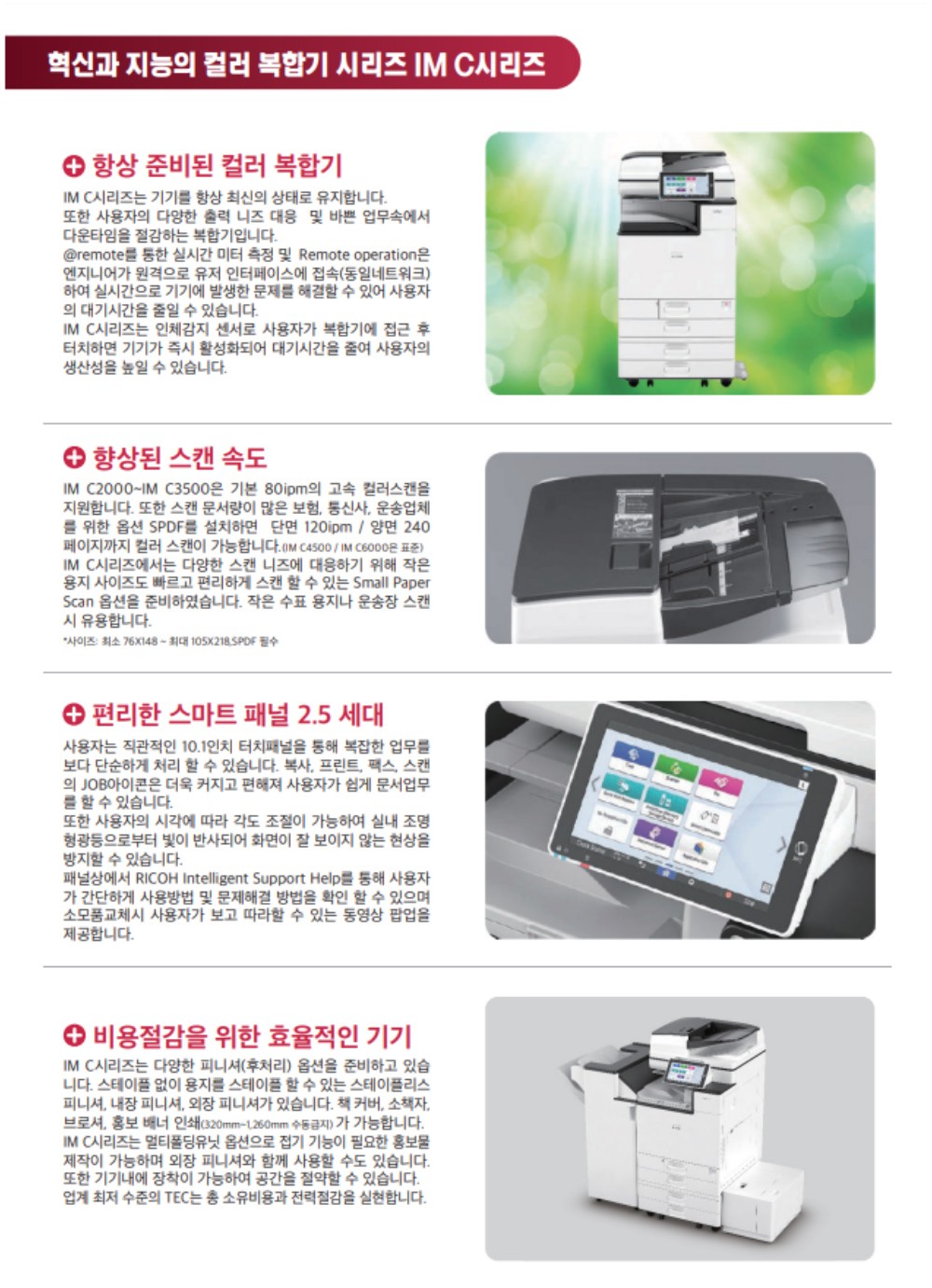대용량 잉크팩이 기본 장착된 높은 생산성과 경제성의 컬러복합기